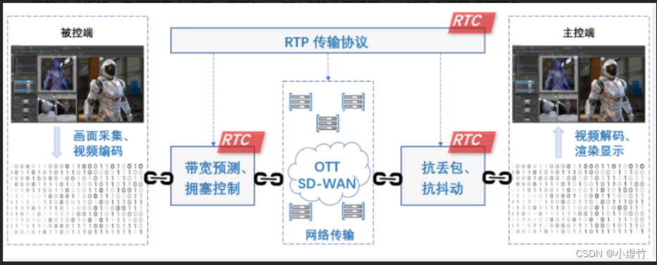 RTC(Real Time Communication)是基于高性能RTP传输协议的实时高清晰度流媒体,是一种针对大规模、低延误、点到点使用场景的实时视频技术框架,特别适合远程桌面服务。