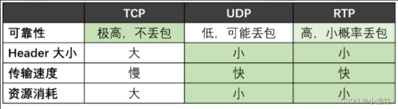 基于UDP的RTP协议补充了序列信息、负载描述和质量监测。 接收端可以根据序列信息消除数据包故障,并可以定期向发送者反馈传输质量。