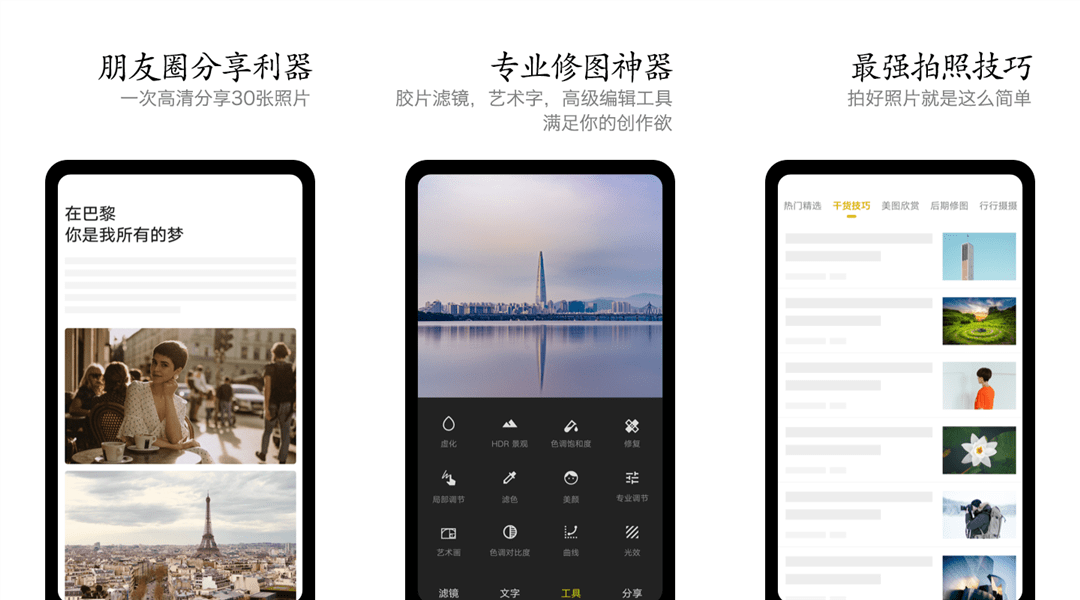 看这个名字,你会发现它是一个系统软件,用于生机电话。该品牌手机以其射击能力而闻名,而除了拍摄硬件,它的射击软件也是强大的。本 app 提供摄影技能教学 、 拍摄 、 编辑等功能,还可以快速与朋友和家人分享照片,拍照 、 修理图纸 、 发送图纸一站.尤其是它的重新绘制功能令人惊讶,它基本上可以满足大多数绘图的需要,你也可以复制别人的滤波器。快做你自己的照片。
