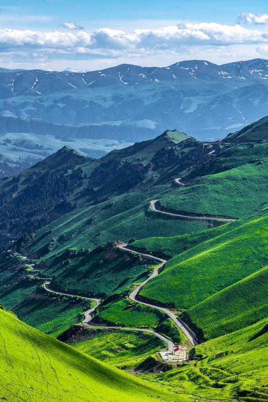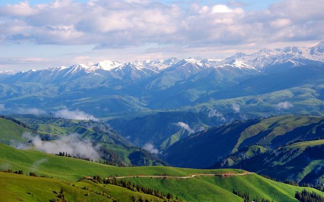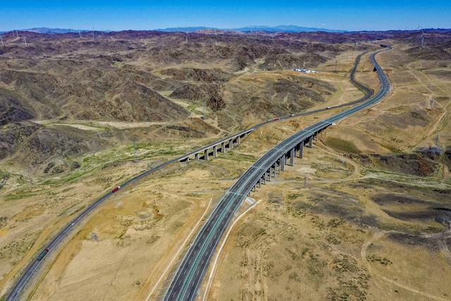 新界新界高速公路(右)经过哈萨克自治区新界森林的山区,新华社