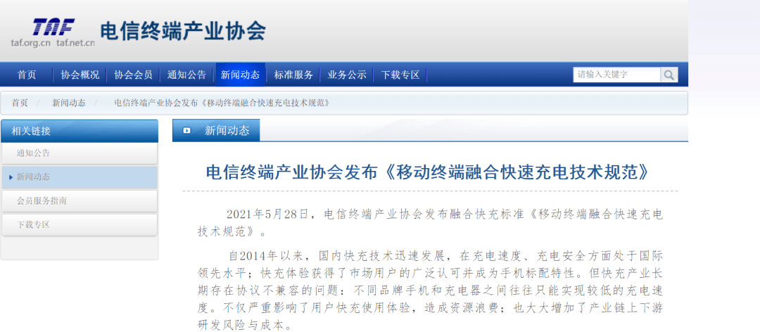 事实上,去年5月28日,电信终端业协会发布了移动终端融合快速充电技术规范。