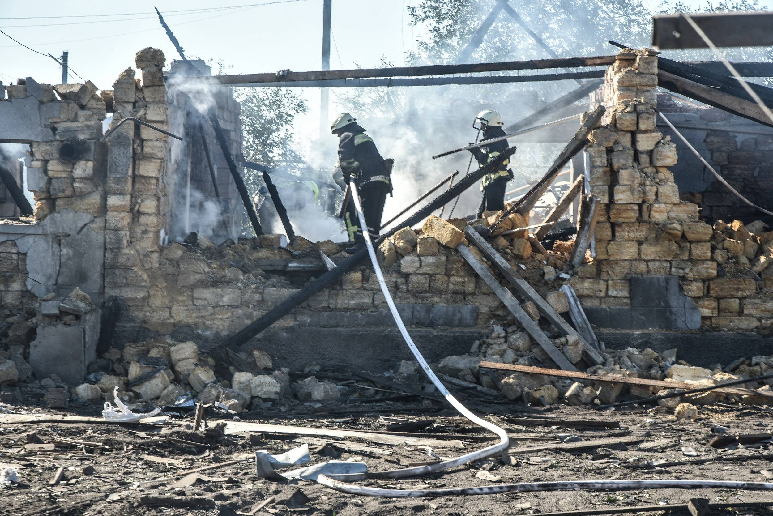2022年7月19日,乌克兰奥德萨的达奇诺耶村被导弹袭击,消防员正在扑灭火灾。 图片来源:Visual China