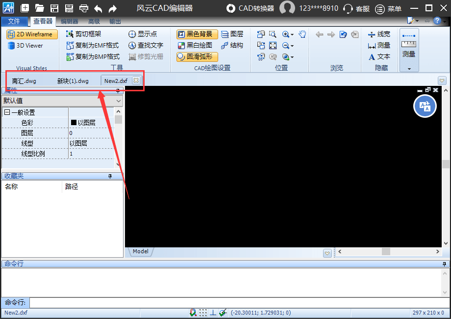 如果您需要创建一个新的CAD文件,请按上部的“+”按钮。您可以从下图的红色框中切换您需要查看和编辑的CAD图案。