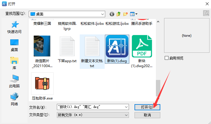 「打开CAD文件」按钮选择在弹出界面中编辑的CAD文件。如果想打开多个CAD文件,可以使用多种选项。完成时,CAD图将显示在界面右边。