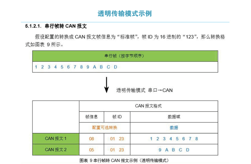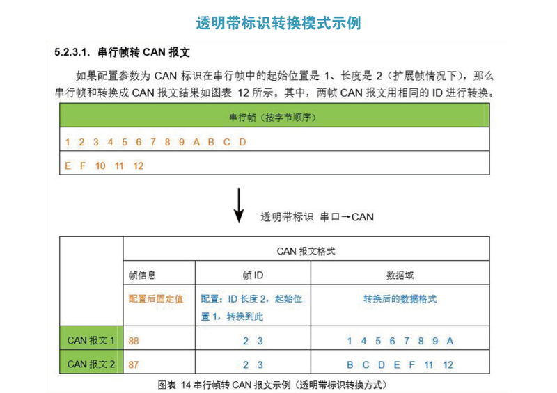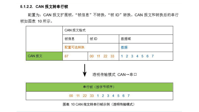 通过评价板的USB接口或直接通过模块的扩展罐接口,可以使用封闭的串行端口来配置工作参数。提供配置软件CANUART配置工具。内capsulated串行艺术传输模块支持三个类型的透明转换、透明带识别和定制协议。每个模式都有一些可选的设置,这个转换模式 + 可选设置组合,它基本上能够满足大多数应用要求。