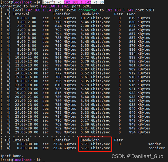 此外,适配器类型为VMXNET3主机142作为服务器,运行测试,带宽为6.71Gbps,超过6.12Gbps则略好。