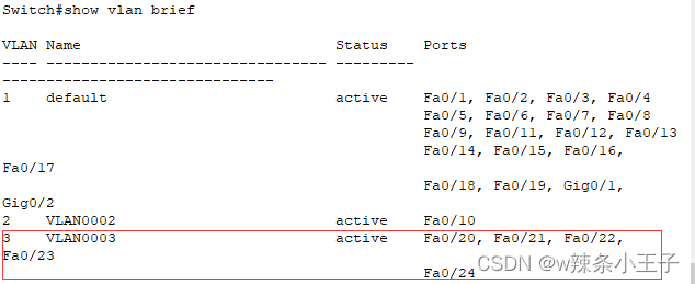 要求:将fa0/10接口添加到vlan2,将fa0/20~24添加到valn3