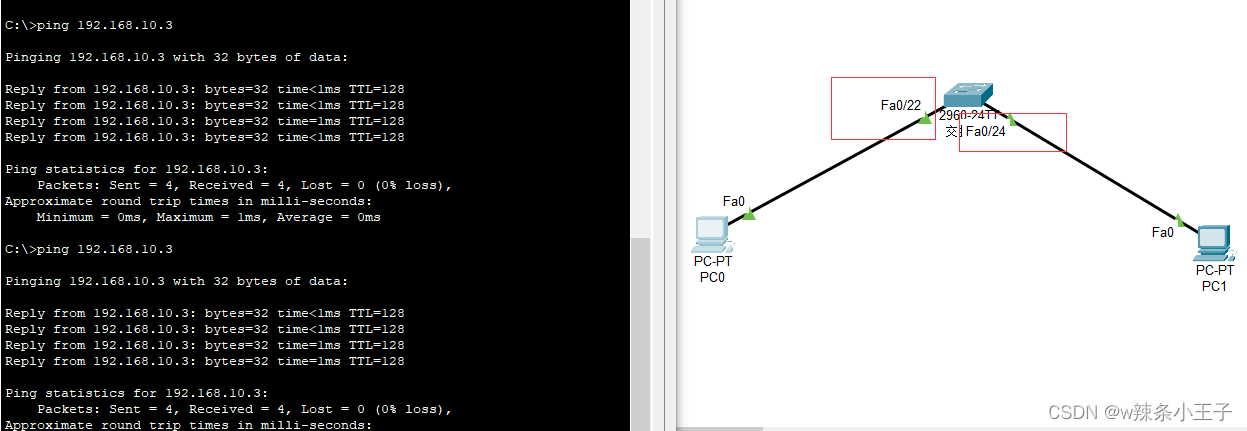 使用设备:交换机2960 (1~24是快速以太网口,还有两个千兆以太网口)