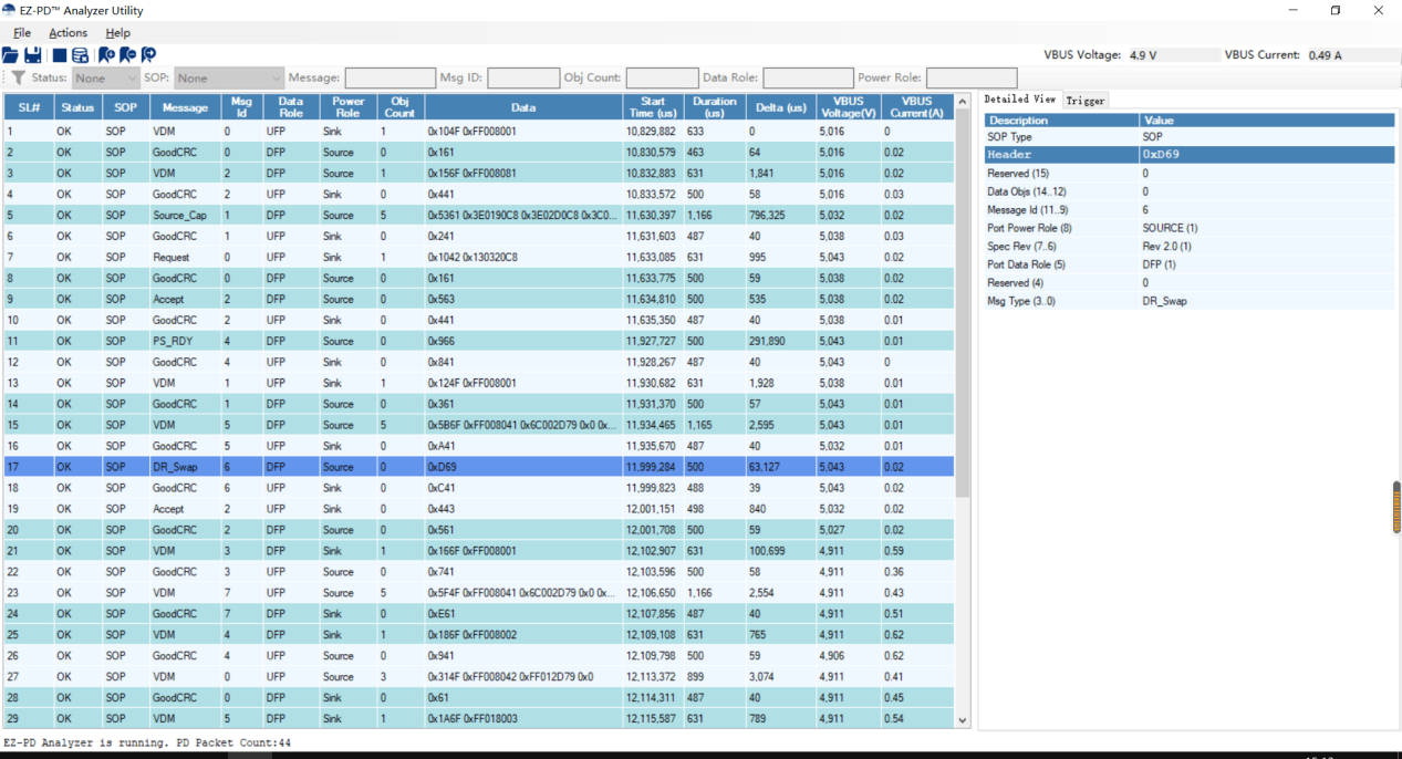 为了更直接地理解,我们利用端装端听手机的协议分析器,利用塞浦路斯的PD协议分析器捕捉了PD协议过程: