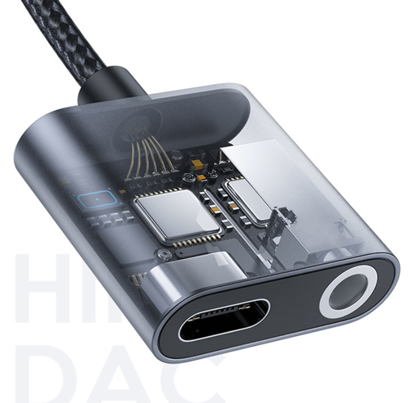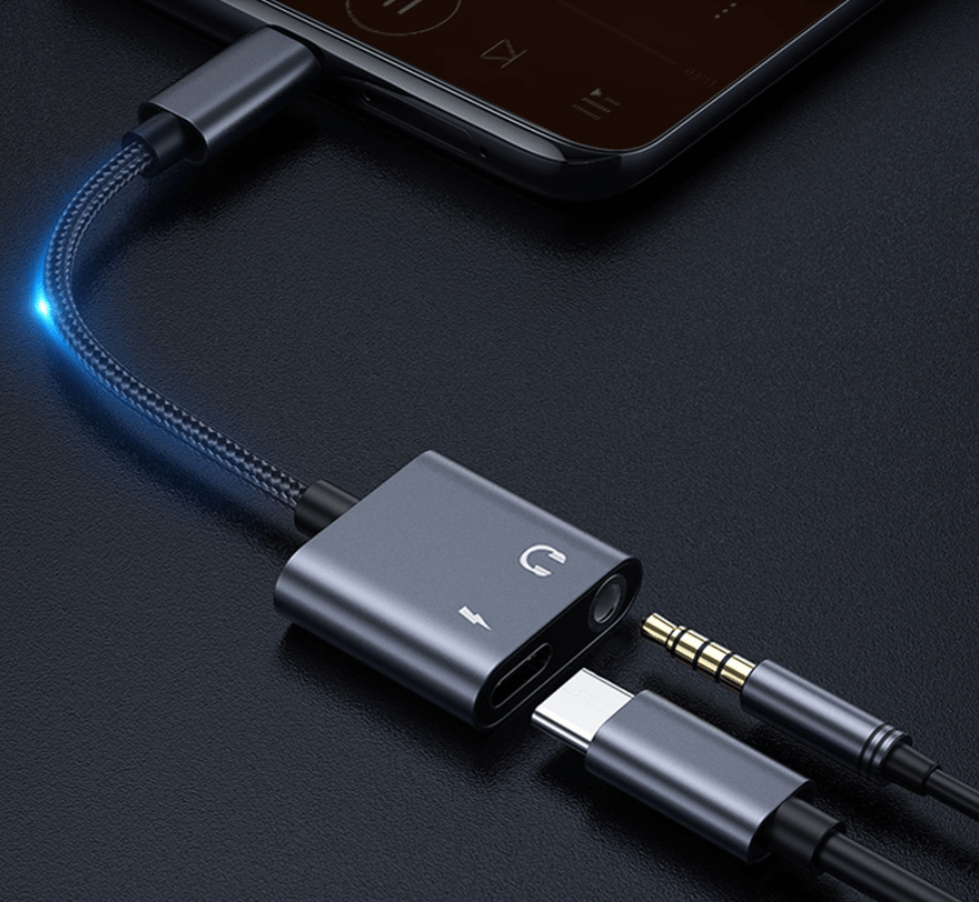 音频转接器一共三个接口,一端type-c公头连接手机设备,一端type-c母座连接适配器,一端3.5mm音频接口连接耳机,看似简单其实里面集成了很多高新技术。