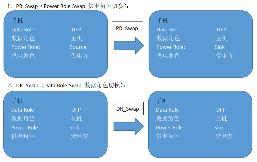 OPPO和Vivo系列手机进行侧端充电,并听音乐角色转换,如果 PR_Swap是强制性的,它可能导致死的手机重新启动问题,在这里,芯片选择CC切断覆盖层,使CC更高,让芯片成为源(供电)和DFP(主机),然后 DR_Swap,只切换数据角色。