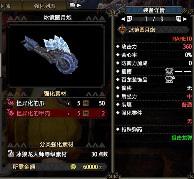 选择的冰属性武器是冰狼龙重弓