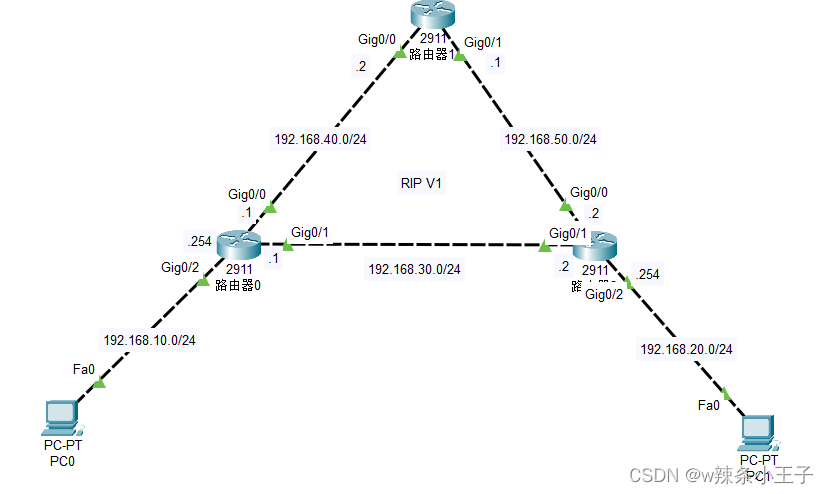 然后配置RIP,让路由器宣布与它直接连接的所有网络段