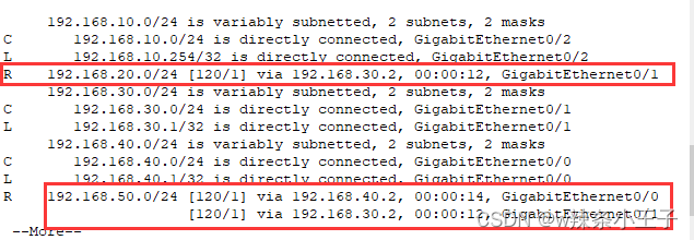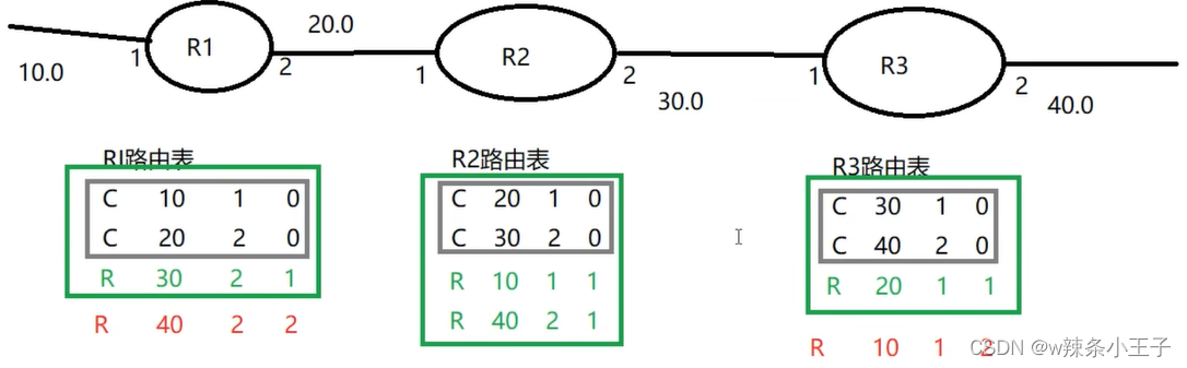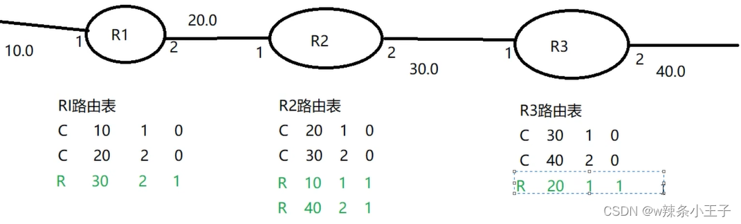 每个30S间隔向邻域路由器发送路由更新消息,通过UDP消息交换路由信息,所使用的端口号码是520,并从邻域路由器学习相应的路由项目R1不会直接学习到R3路由