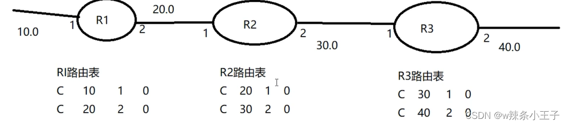 每个路由器需要完成直接连接段的声明。 上面的配置匹配,替换网络段