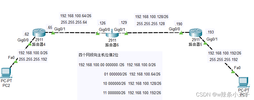 首先,为每个路由器的每个接口配置IP地址和子网面具