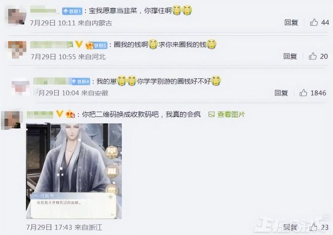 大量玩家哭着表示,求《灵猫传》学学其他大厂圈一下钱,还有表示甘愿当韭菜求割的,甚至还有求官方圈贴出收款码想直接打钱的。