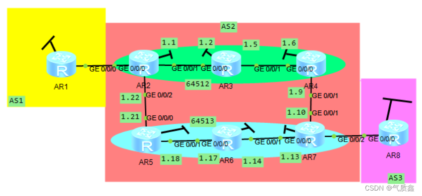 AS2内部路由器与R2配置相同,完成后检查路由表,并进行测试,确保AS2内部的互操作性