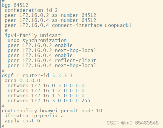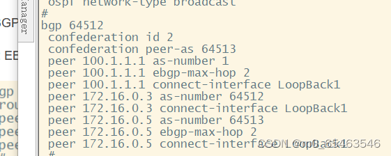 R2和R1EBGP配置等效,R3构建IBMGP邻居关系,R5构建EBGP关系,实现AS2域联邦,并减少配置