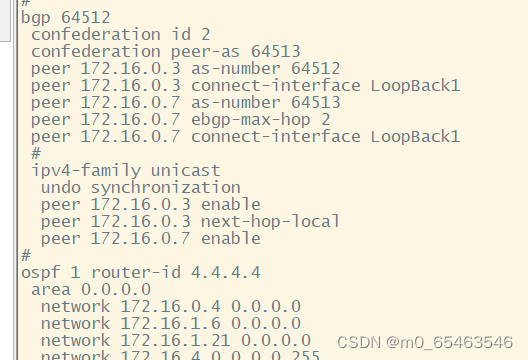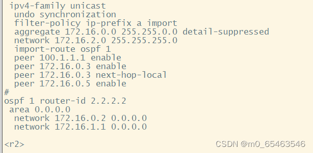 [r7-bgp]aggregate 172.16.0.0 16 detail-suppressed // 注,这里可以根据个人需要编写或不编写详细的资料,为个别业务提供额外的策略