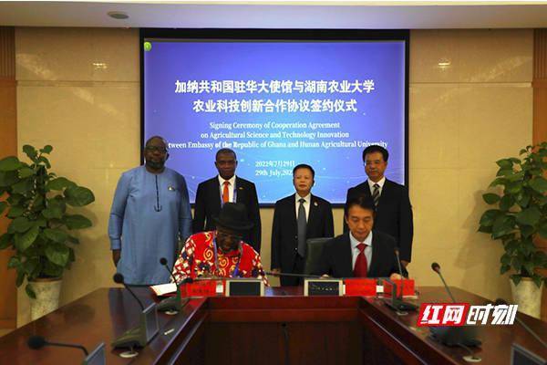 红网时刻新闻7月30日讯(通讯员黄栗记者刘志雄)7月29日下午,加纳驻华大使馆与湖南农业大学签署农业科技创新合作协议。