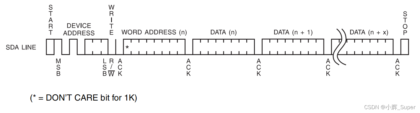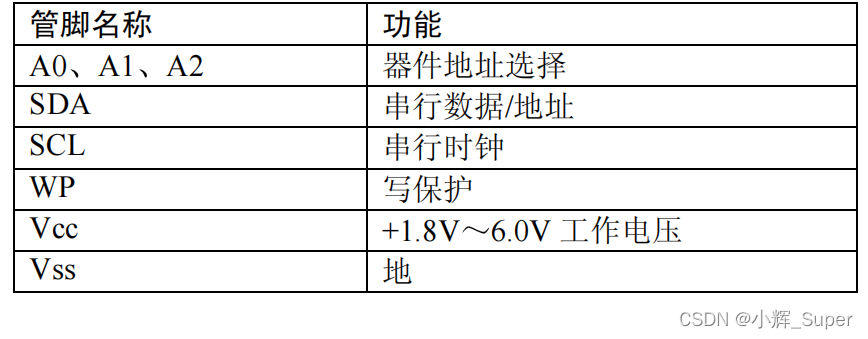 AT24WC01/02/04/08/16 双向串行数据/地址管脚用于器件所有数据的发送或接收,SDA 是一个开漏输出管脚,可与其它开漏输出或集电极开路输出进行线或(wire-OR)。