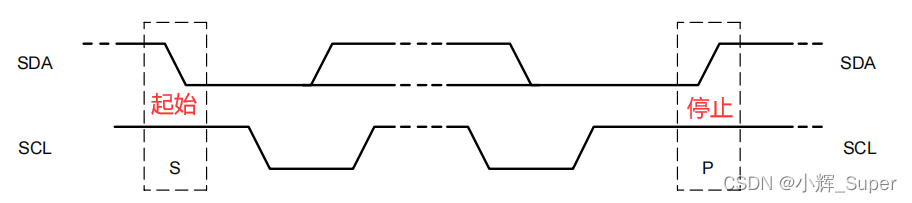 停止信号当SCL是高电压时,SDA从低电压转向高电压。