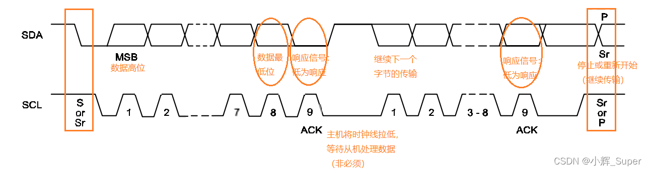 在响应时钟脉冲期间,接收器必须拉下SDA线,以保持高压时钟脉冲期间的稳定低压。