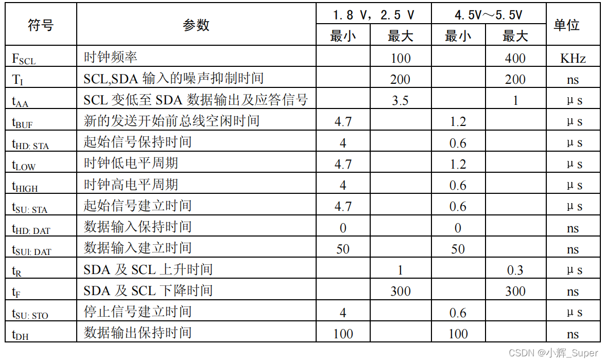 参见AT24CXX手册下表所示4.5V~5.5V参数