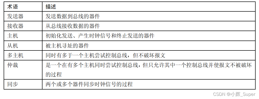 1.I2C:I2C总线(Inter-Integrated Circuit,内部整合电路)是由Philips公司开发的一种简单、双向二线制同步串行总线。它只需要两条线来传输到与总线连接的设备之间的信息。