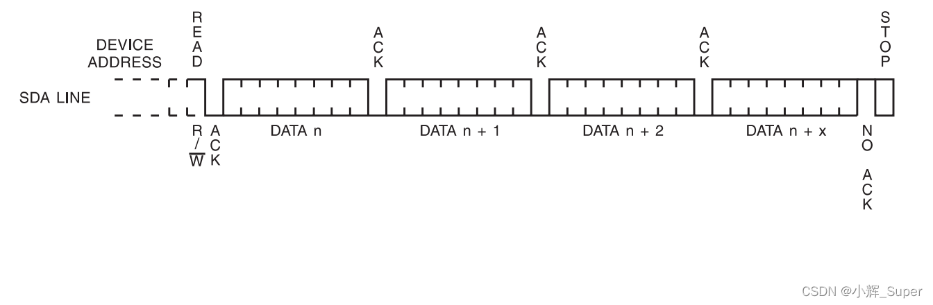 如果第二个节点是主机读数据然后,当第二个字符转移完成并到达右边的第九个时钟周期时,主机可以发送非响应信号(保持SDA高)通知发送者数据传输的结束,让发送者释放数据线,并允许主机生成停止信号或重新起始信号.在某些情况下(例如连续阅读),主机可以发送响应信号,继续数据传输。