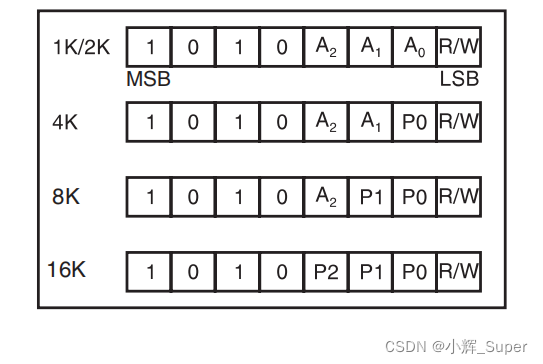 AT24C01/02/04/08/16支持I2C总线数据传输协议I2C总线协议规定,任何设备将数据发送到总线作为发送器.任何接收数据的设备都是接收器。数据传输由产生序列时钟和所有初始停止信号的主设备控制。主要设备和从设备可以是传送器或接收器,但数据传输方式(发送或接收)由主设备控制,通过器件地址输入端 A0、A1 和 A2 可以实现将最多 8 个 24CW01 和 24CW02 器件,4 242 CW04 设备,两个24CW08设备和一个24WC16设备连接到总线。