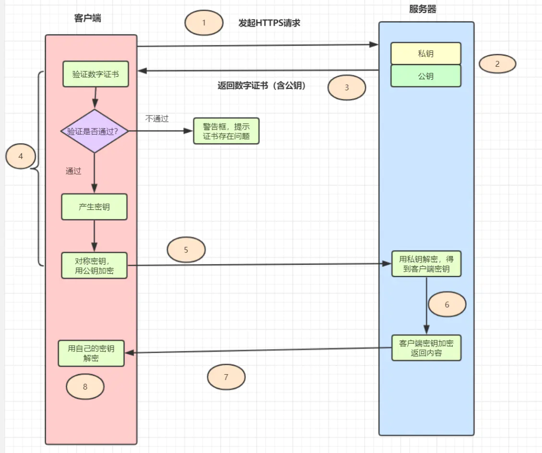 知识点是HTTPS的工作流程。我们需要回答这些问题:公共和私人密钥、数字证书、加密、对称加密和非对称加密。