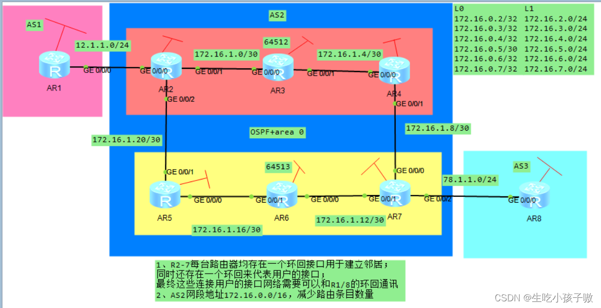 [r2-bgp]aggregate 172.16.0.0 16 detail-suppressed 只发送聚合条目,不转发明细条目[r7]bgp 64513