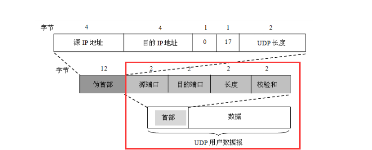 如图所示,UDP协议非常简单,由两个部分组成:第一部分和数据,其中第一部分只包含8个字符,包括源端口和目的地端口、长度(UDP用于数据报告的长度),校正等。