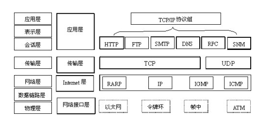 TCP/IP协议不给出网络接口层的具体描述,网络接口层与物理层和数据链层相符。