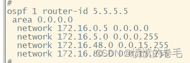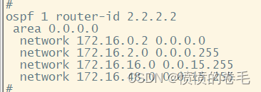 [R2-ospf-1-area-0.0.0.0] network 172.16.1.1 16.0.15.255[R2-ospf-1-area-0.0.0.0] network 172.16.2.1 48.0.15.255