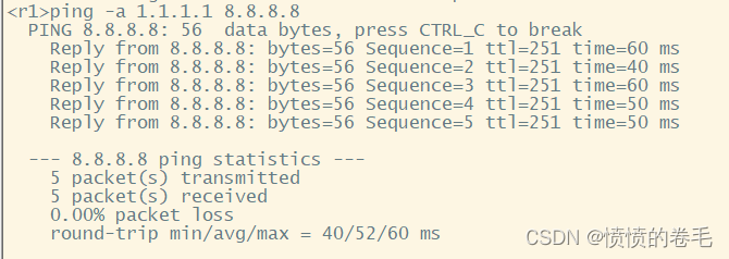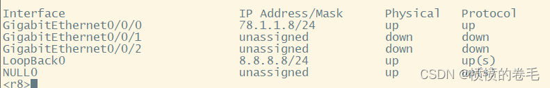 到此可以使用r1的1.1.1.1的环回ping到r8的8.8.8.8环回实验目的完成实验结束!