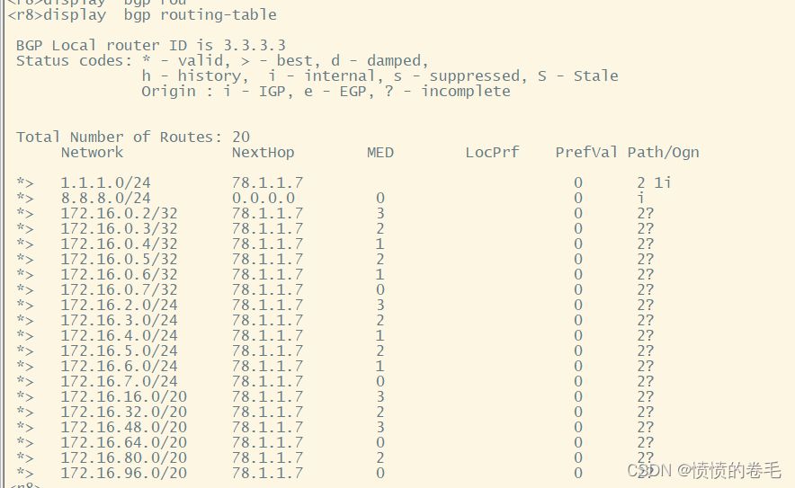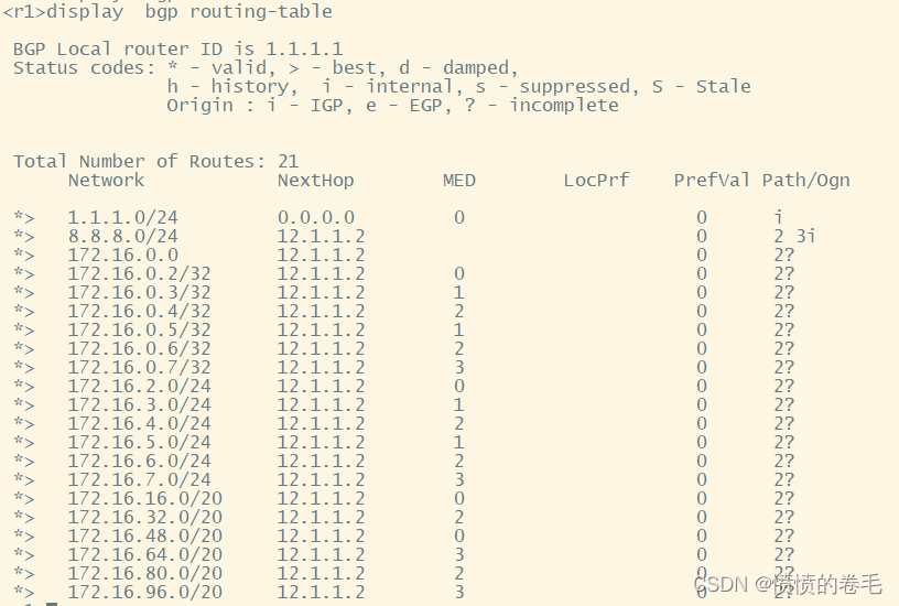[r2-bgp]aggregate 172.16.0.0 16 detail-suppressed