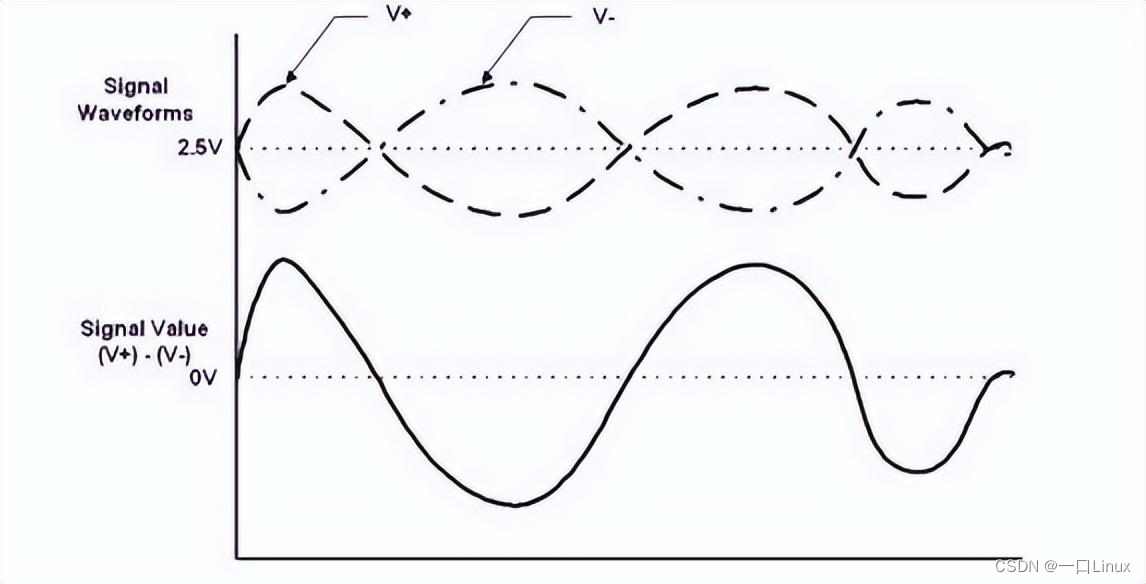 逻辑0和逻辑1。 如图所示,它使用V+和V信号之间的差异来表达图下信号。