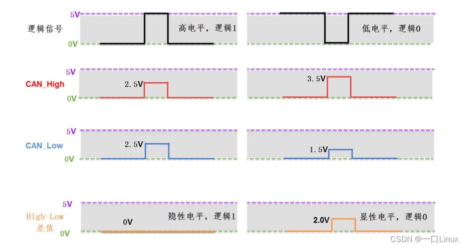举一个例子,正常单线假设逻辑1是3.3V,逻辑0假设是0V,但是如果有噪声,把3.3V放在0V(极限),制造0V-3.3V,此时就逻辑错误,但 Can high/Can low一般在两行作用,尽管两者都有噪音效应,但是差值还是不变的