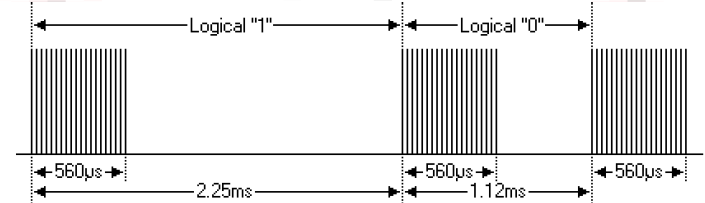 NEC协议逻辑1和逻辑0在下列图表中显示: