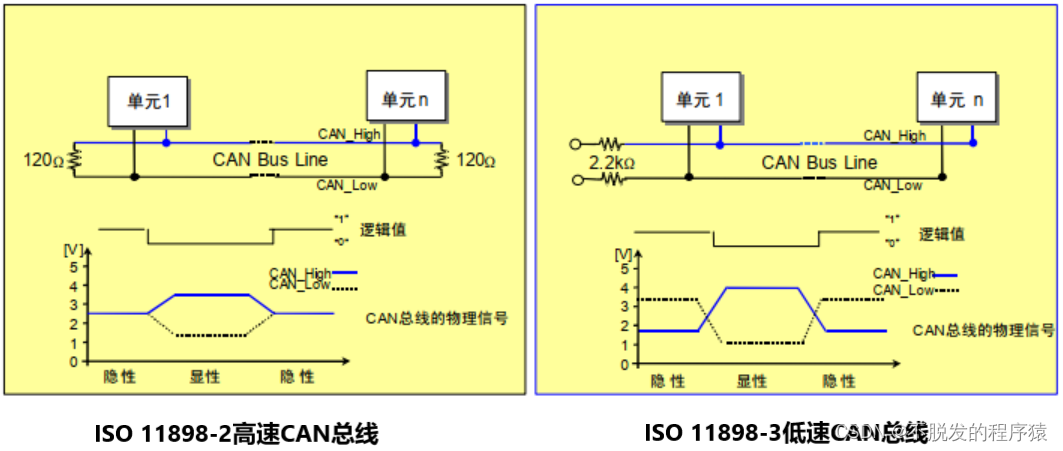 在ISO 11898-2和ISO 11898-3中,指定了两个CAN总线结构(在BOSCH CAN2),0规范中没有描述总线拓扑结构。