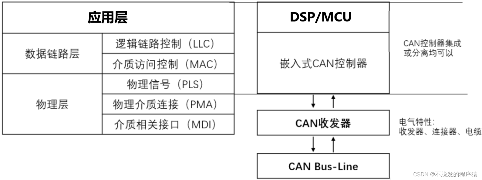 CAN节点通常由三个部分组成: CAN接收器、CAN控制器和MCU。