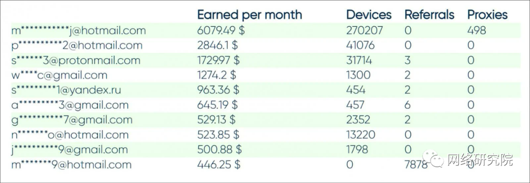 作为共享带宽的回报,设备所有者从向客户收取的费用中分得一份收入。例如,Peer2Profit 服务显示用户通过在数千台设备上安装公司的软件每月可赚取高达 6,000 美元的收入。