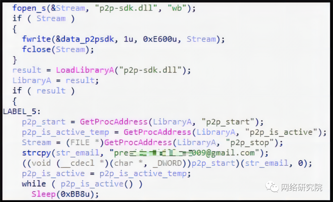 恶意软件检查代理客户端是否在主机上运行,如果停止,它可以使用"p2p_start()"函数启动它。