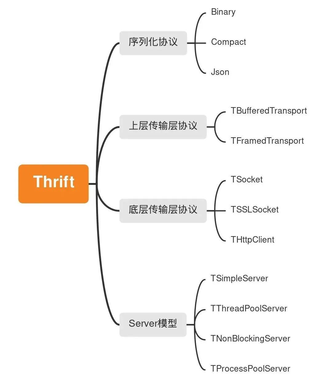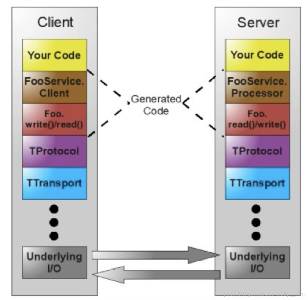 Thrift软件堆是明确定义的,每个组件层是松散耦合的,相互连接的,并且可以根据业务场景灵活地结合,如图所示: