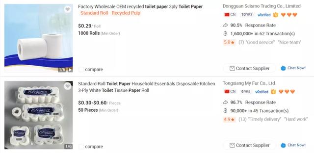阿里巴巴国际站:一些商家每月销售800万吨卫生纸