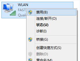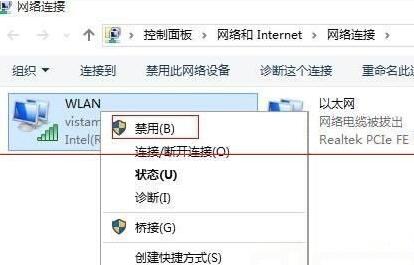 4、我们要找的是WLAN的连接,右键点击它,选择"禁用",待图标变成灰色后,再次将其"启用",这样,无线网就可以重新连接了。