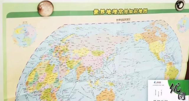 这个地球仪有一张世界地图,一张中国地图和一个便携式放大镜。